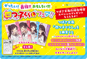 『四つ子ぐらしフェア!!』ヒミツのストーリーつきイラストカードがもらえる! つばさ文庫応援店