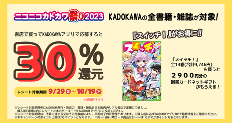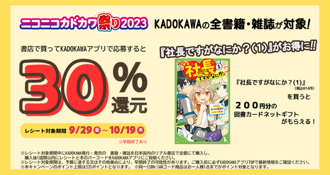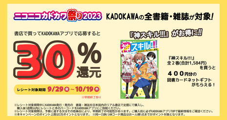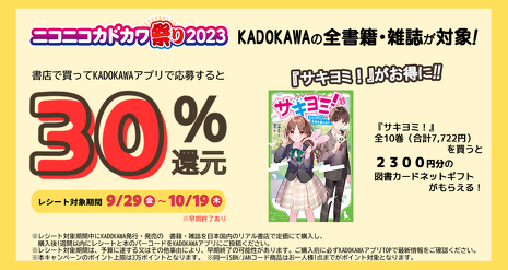 期間中、書店でKADOKAWAの本を買って応募すると、図書カードネットギフトがゲットできるよ!