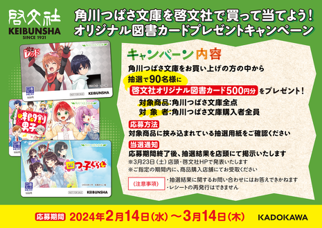 抽選で90名様に啓文社オリジナル図書カード500円分をプレゼント!