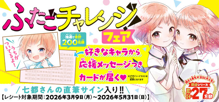 ※マンガ版「ふたごチャレンジ!」1巻は対象外です、ごめんなさい。