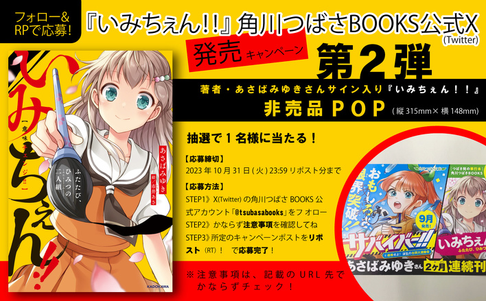 フォロー&RPで応募!『いみちぇん!!』 角川つばさBOOKS公式X (Twitter) 発売キャンペーン 第2弾
