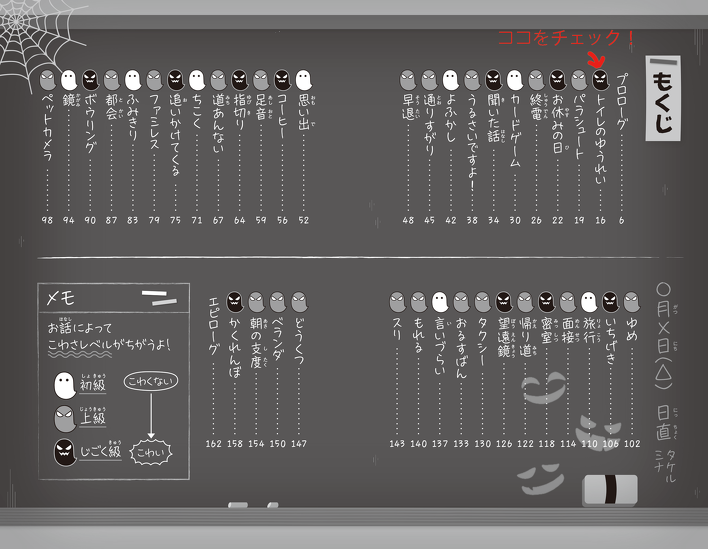 ↓↓↓こわさレベルは、本のもくじについているオバケマークをチェックしてね!↓↓↓