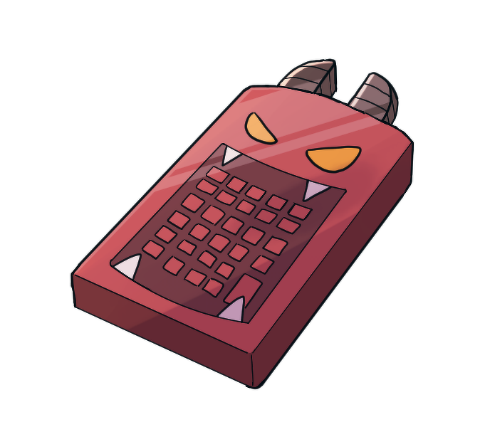 鬼のツノとキバがはえた、電卓のような形をしたアイテム。