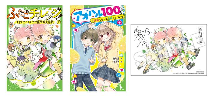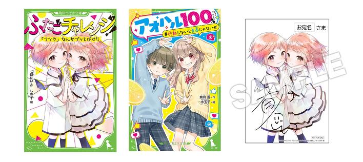 【あて名入り】七都にい先生直筆サインカード付き つばさ文庫『ふたごチャレンジ!①』&『アオハル100%①』セット