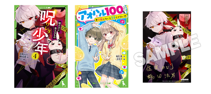 【あて名入り】佐東みどり先生・鶴田法男先生 直筆サインカード付き つばさ文庫『呪ワレタ少年④』&『アオハル100%①』セット