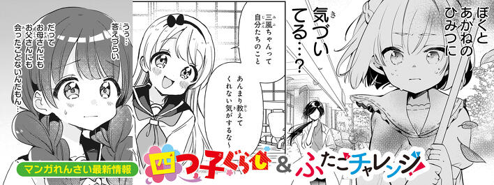 今週も、マンガ「四つ子ぐらし」&「ふたごチャレンジ!」の