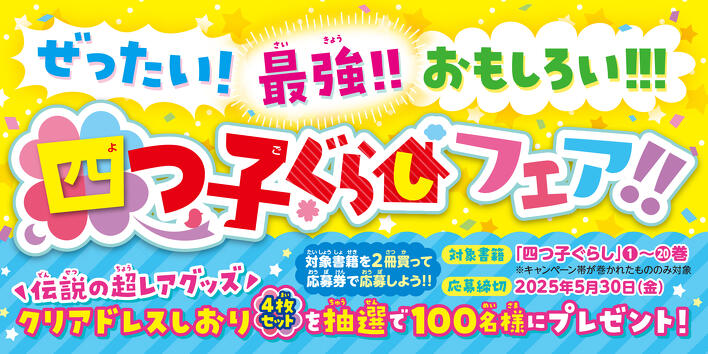 ★「つばさ文庫応援店」で「四つ子ぐらし」を買うとヒミツのストーリーつきイラストカードもらえる!