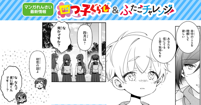 マンガ「四つ子ぐらし」第28話後編&「ふたごチャレンジ!」第10話