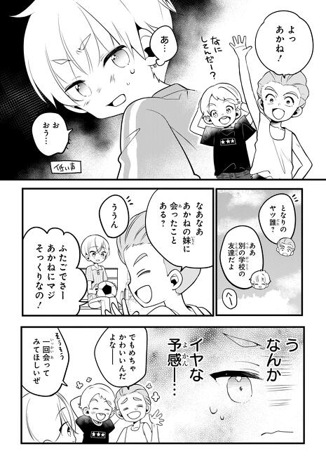 公園で、ぐうぜん出会った、別の小学校に通う男子・太陽と、なかよくなった、あかね。
