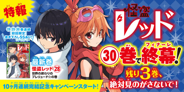 シリーズ最新巻『怪盗レッド㉘ 世界の終わりのプレリュード☆の巻』に、本屋さんで会おう!