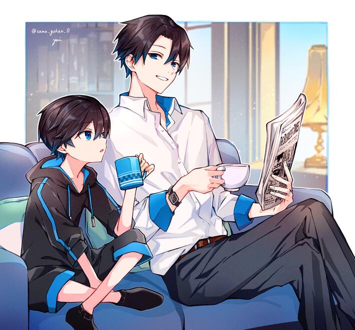 作品の中で、2人きりで話すシーンは少ないけど…もしかしたら休日、ゆっくりとした親子の時間をすごしているのかも? という、Yuiさんの想像から生まれたファンアート。