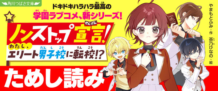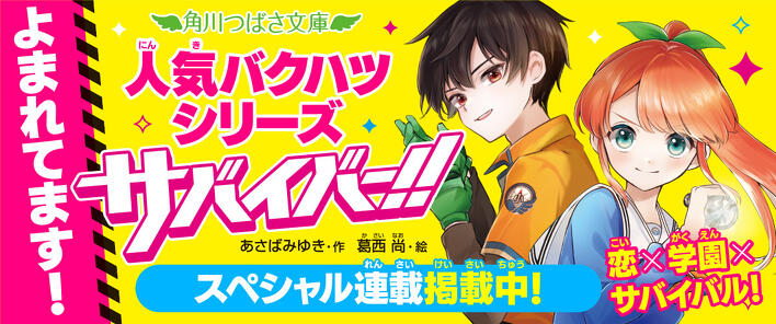 きっと続きが読みたくなる13作品を、KADOKAWA児童書ポータルサイト「ヨメルバ」で、ためし読み連載しているよ。