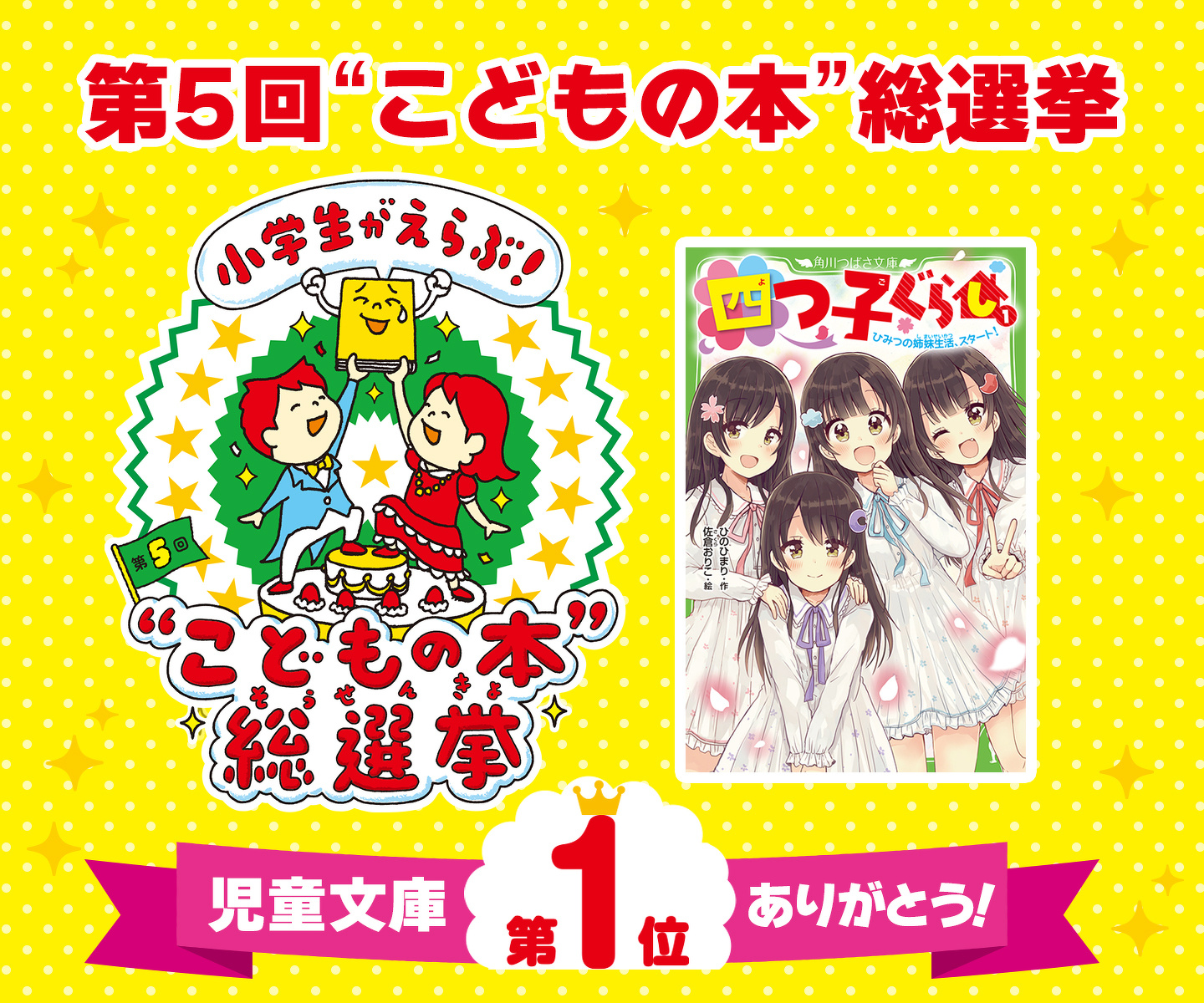 1巻は"こどもの本"総選挙のイラスト&ロゴと四つ子のイラスト入り、