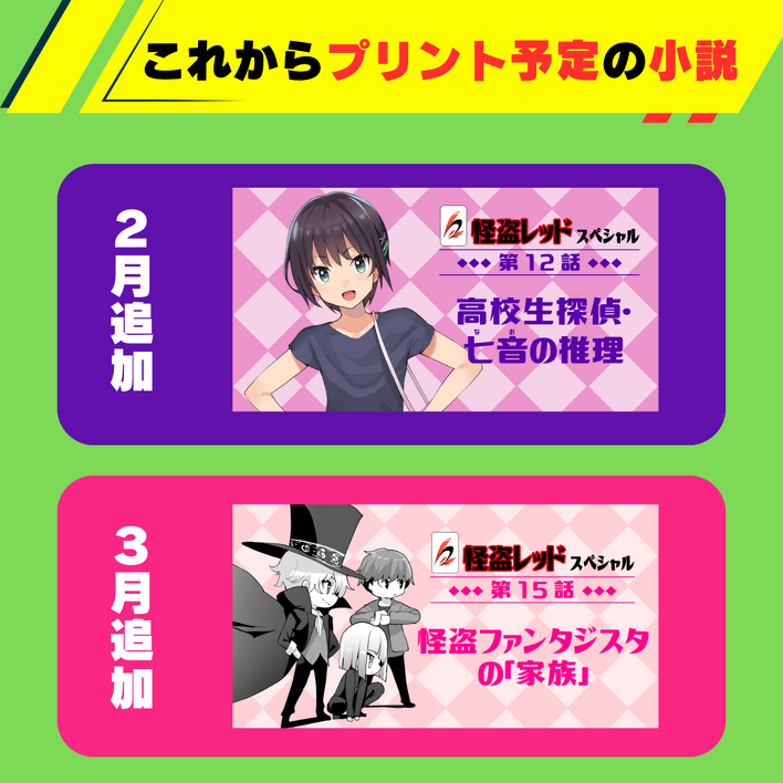 ヨメルバで読めた「怪盗レッド☆スペシャル短編」のうち、つばさ文庫未収録作品がプリントできる!