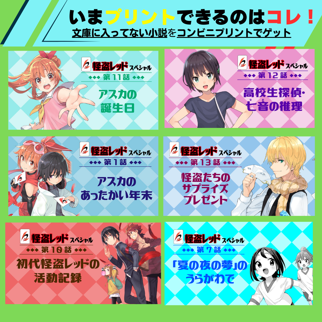 「怪盗レッド」シリーズ全巻のカバーイラストが、ファミマプリント、セブン-イレブンプリントに、毎月投入されるよ!(それ以外のイラストの追加もあるかも!?)