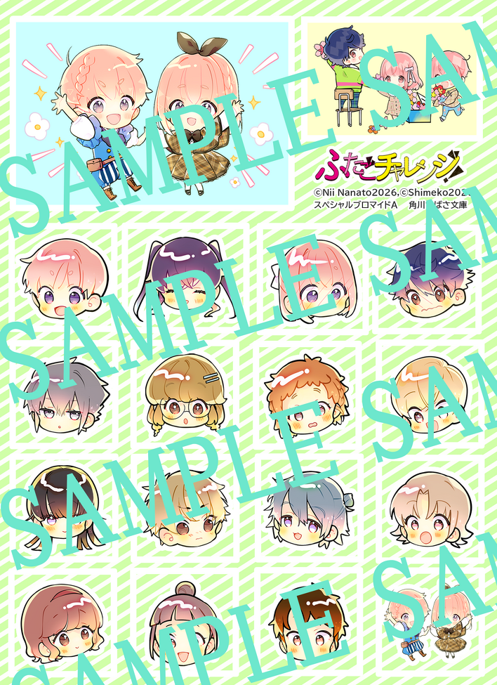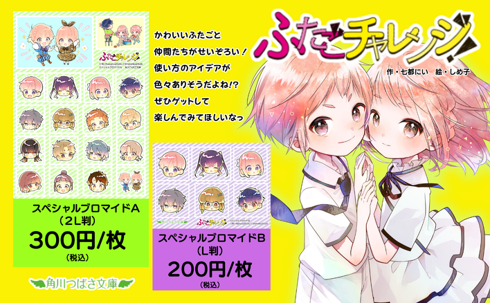 「ふたごチャレンジ!⑪」のうら表紙の、超~~~~~かわいいキャラたちをブロマイドで、シールで、ゲットしよう!