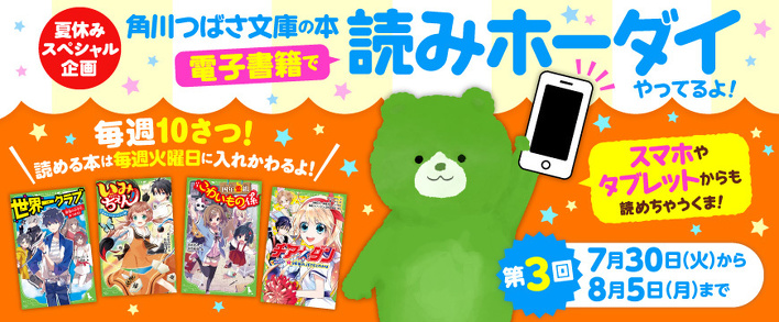 毎週10冊、人気のつばさ文庫の電子書籍が、無料でぜーんぶ読めちゃうよ!