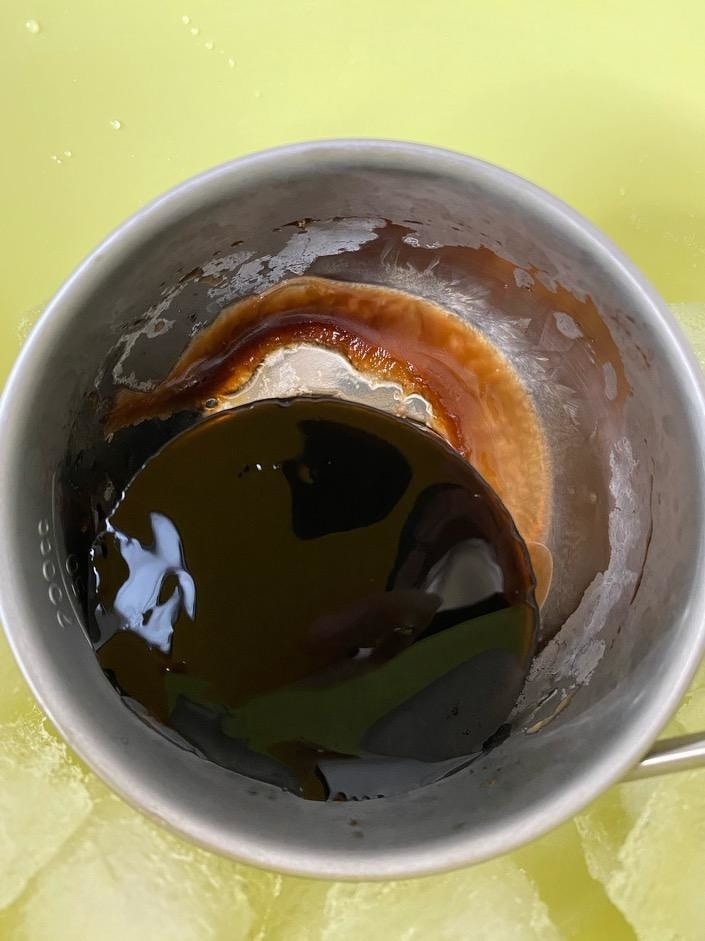 この実験の時にはフルーツゼリーがなかったので、コーヒーゼリーにさせてもらいました。(おおざっぱですみませんが、皆さんもぜひ、いろんなものを凍らせてみてください!)