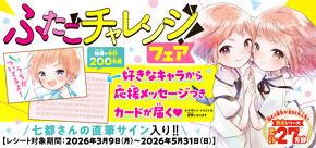 「ふたごチャレンジ!フェア」情報☆キャラから応援メッセージ&七都にいさんの直筆サイン入りカードが抽選でプレゼント!