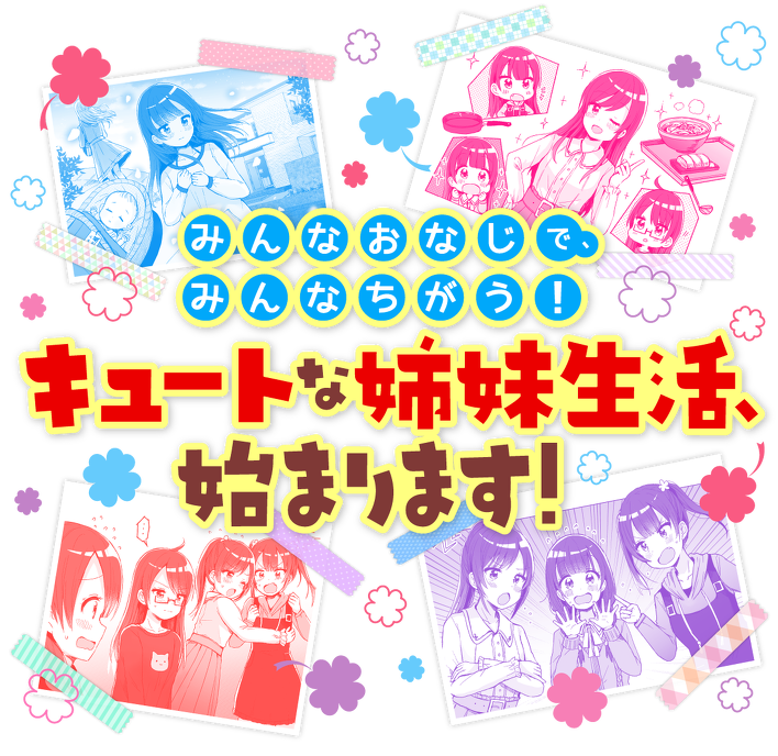 顔も声もそっくりな四つ子の姉2人&妹1人といっしょに、
