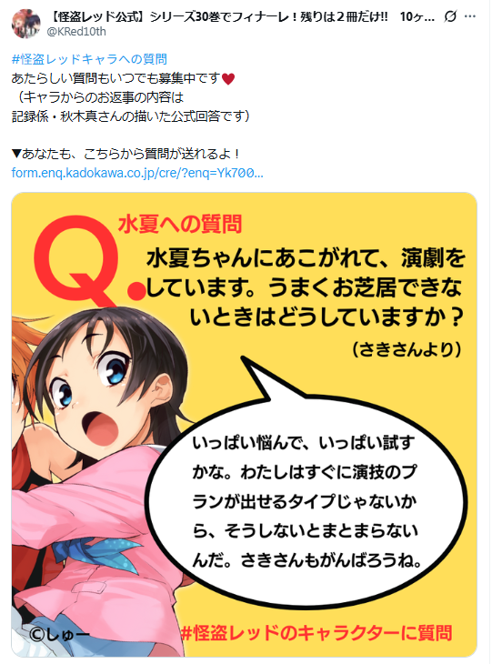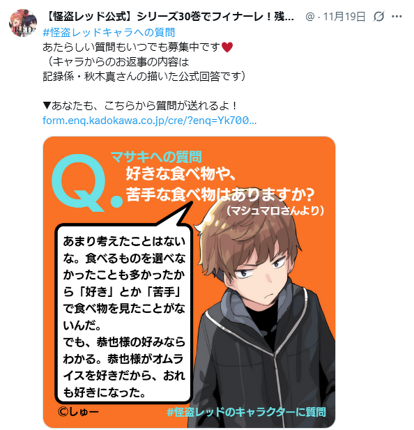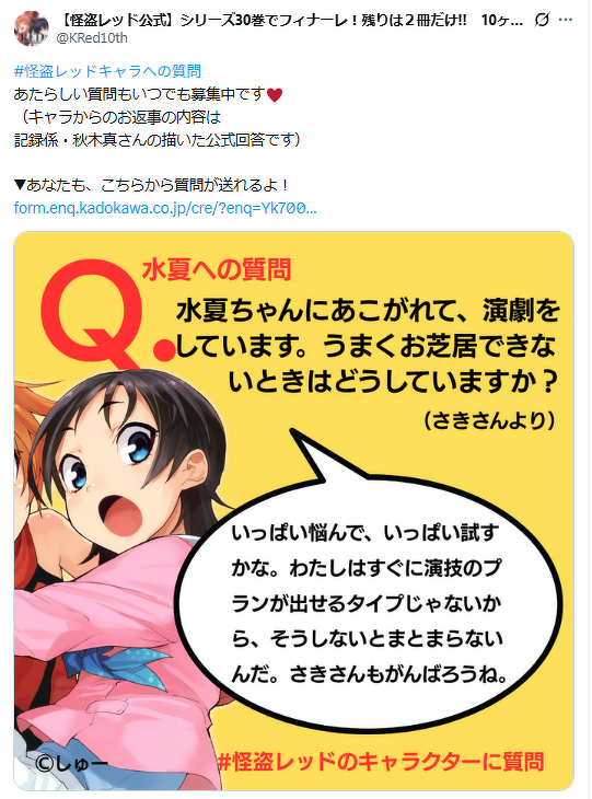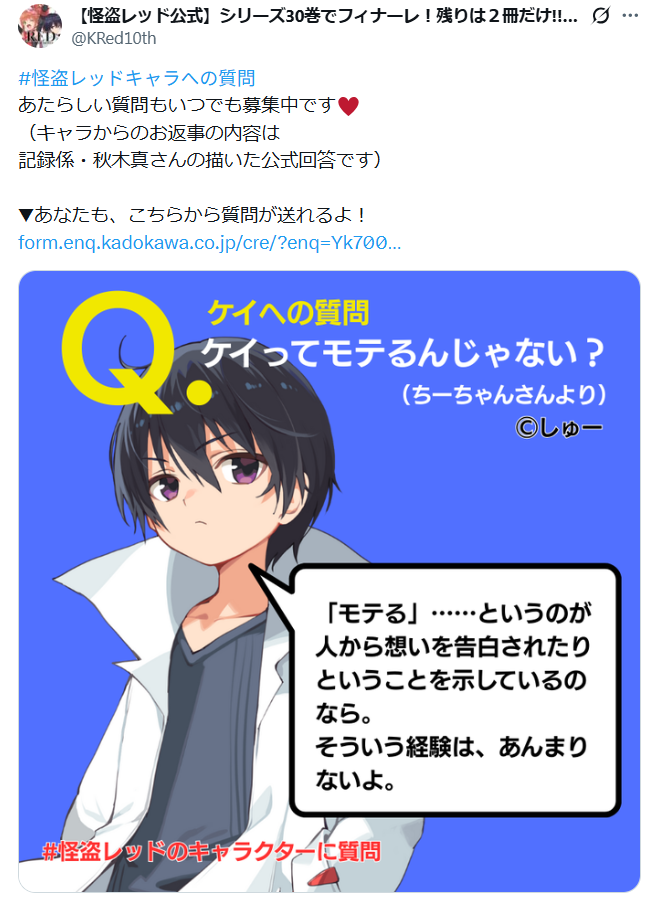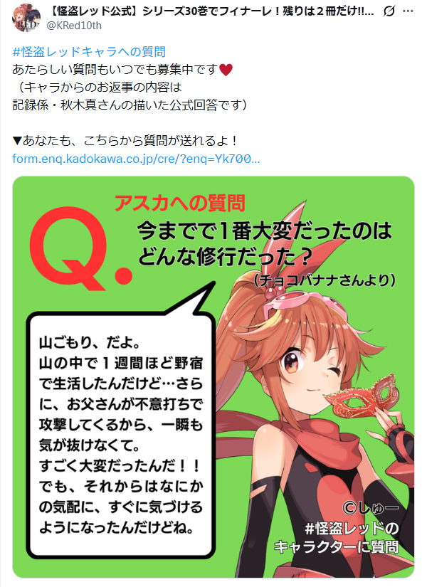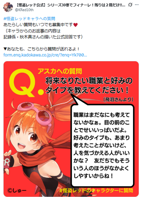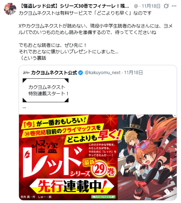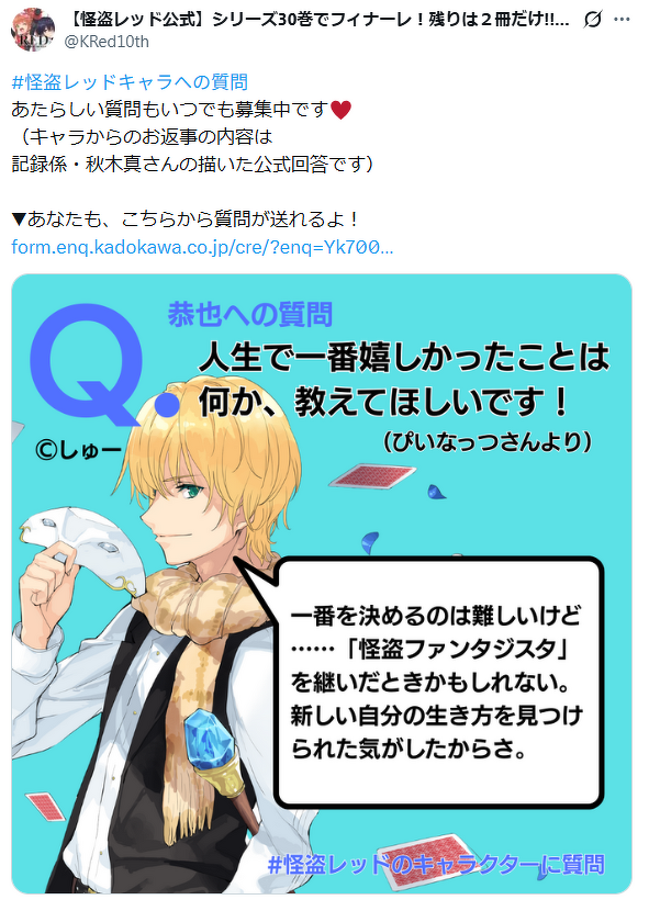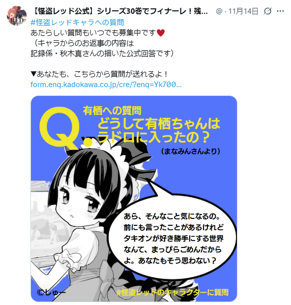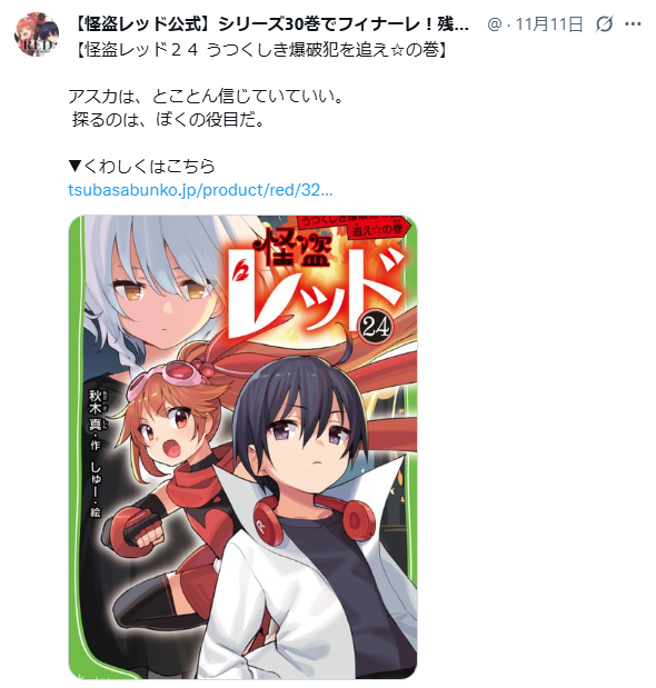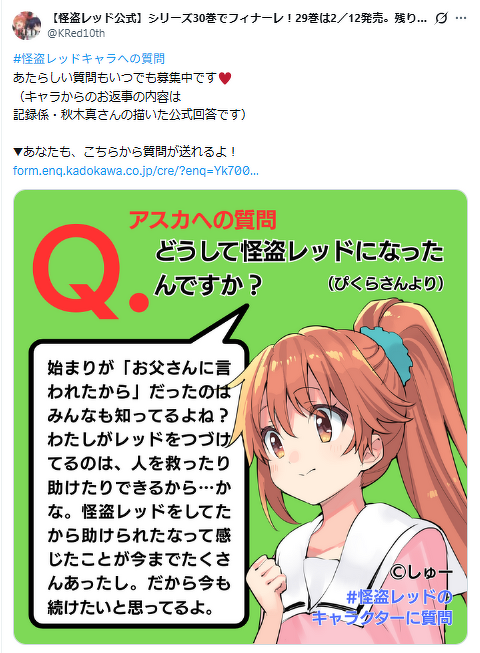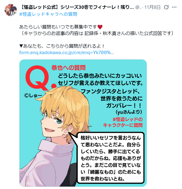 ただいま、X(旧Twitter)上にある、怪盗レッド公式アカウントで、