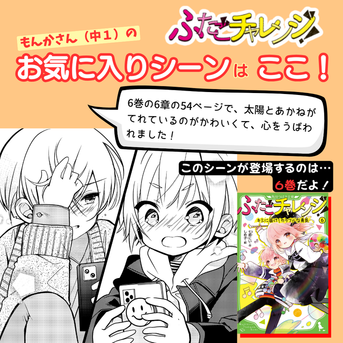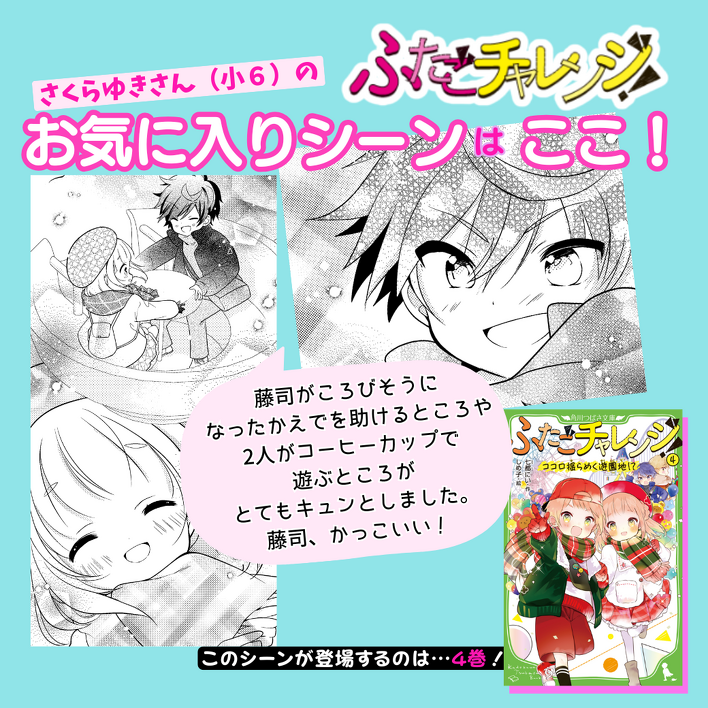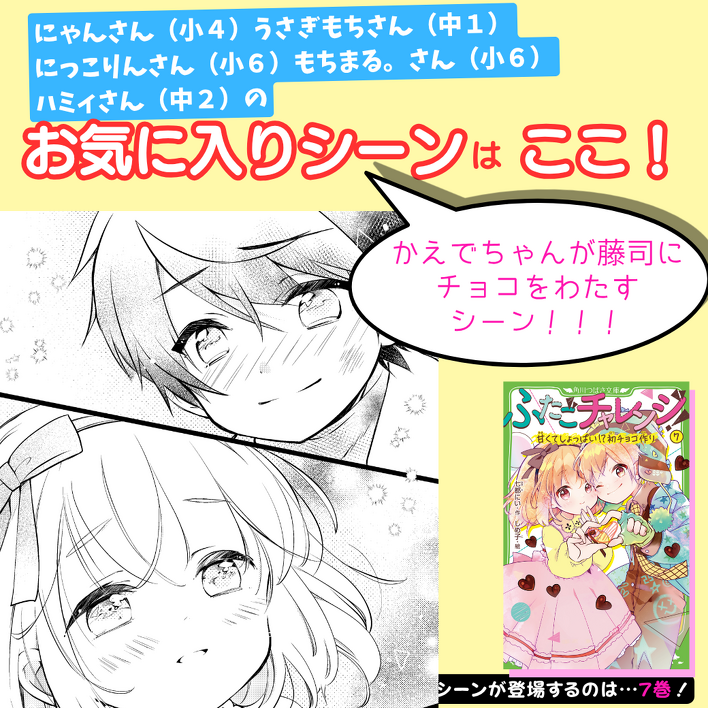 1冊ぜんぶ、ワクワクドキドキがいっぱいなんだけど、とくにかえでと藤司のシーンが大好き!!と教えてくれた人がたくさん!
