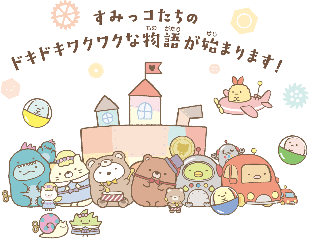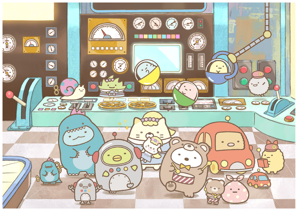 くま工場長からおもちゃ作りにさそわれたすみっコたち。